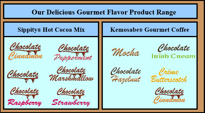 All Southwest Beverages® products are available in a variety of versatile packaging options that are ideal for delis, motels, outdoor adventurers, travelers and home or office consumption. Available in Sippity® Hot Cocoa Mix and Kemosabe® Gourmet Coffee flavors. Each serving makes one perfect 8-ounce cup of Sippity® hot cocoa or Kemosabe® gourmet flavored coffee. To enjoy the Comfort In A Cup® experience simply empty envelope, packet or portion into a mug with 8-ounces of hot water, stir, cradle the mug in your hands, then sip, savor and enjoy.